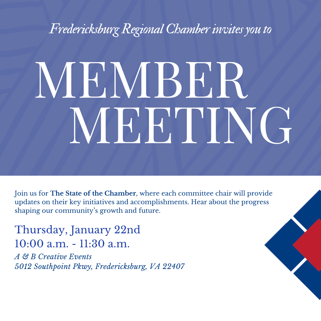The Fredericksburg Regional Chamber is the hub of business in the fastest growing region in the Commonwealth. We build relationships and create competitive advantages for a healthy business environment. We do this through leadership, access, advocacy, and connections.