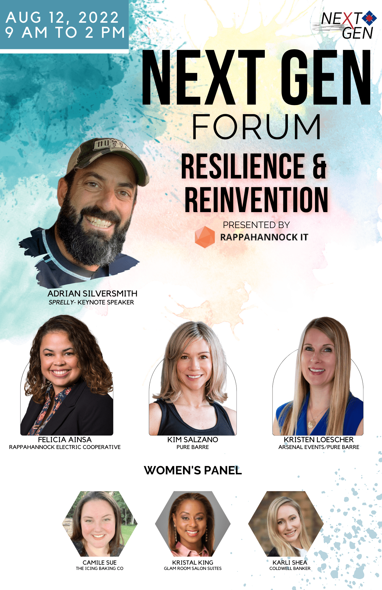 How many times have you had to have resilience in your professional journey? Have you had to reinvent yourself on your path to professional development? Are you always pushing yourself for excellence in everything you do? Join Next Gen for our Resilience and Reinvention Forum to hear from local young professionals and business owners about their own paths in resilience and reinvention.