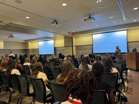 The event opened with a keynote address by Corey Wright, MD, trauma surgeon at Mary Washington Healthcare, who shared real-world insight into the full spectrum of general and trauma surgery and emphasized the importance of teamwork, service, and lifelong learning in healthcare careers.