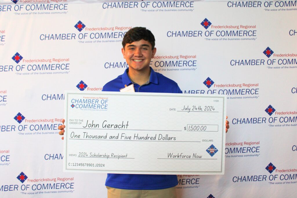 The Chamber’s Workforce NOW Committees and Board of Directors were pleased to present three (3) deserving students with scholarships on July 24th, 2024 at the quarterly member meeting. The Fredericksburg Regional Chamber in partnership with Go Virginia, Fredericksburg, Stafford, Caroline, Spotsylvania, and King George Public Schools, Germanna Community College and University of Mary Washington host an annual Intern Expo, each year in February. A scholarship application opportunity was offered to any student who attended the Intern Expo. The applicant pool was strong, and 3 students have been selected as our 2024 Workforce NOW Scholarship Recipients. Interested in donating to the 2025 scholarship fund, contact [email protected]